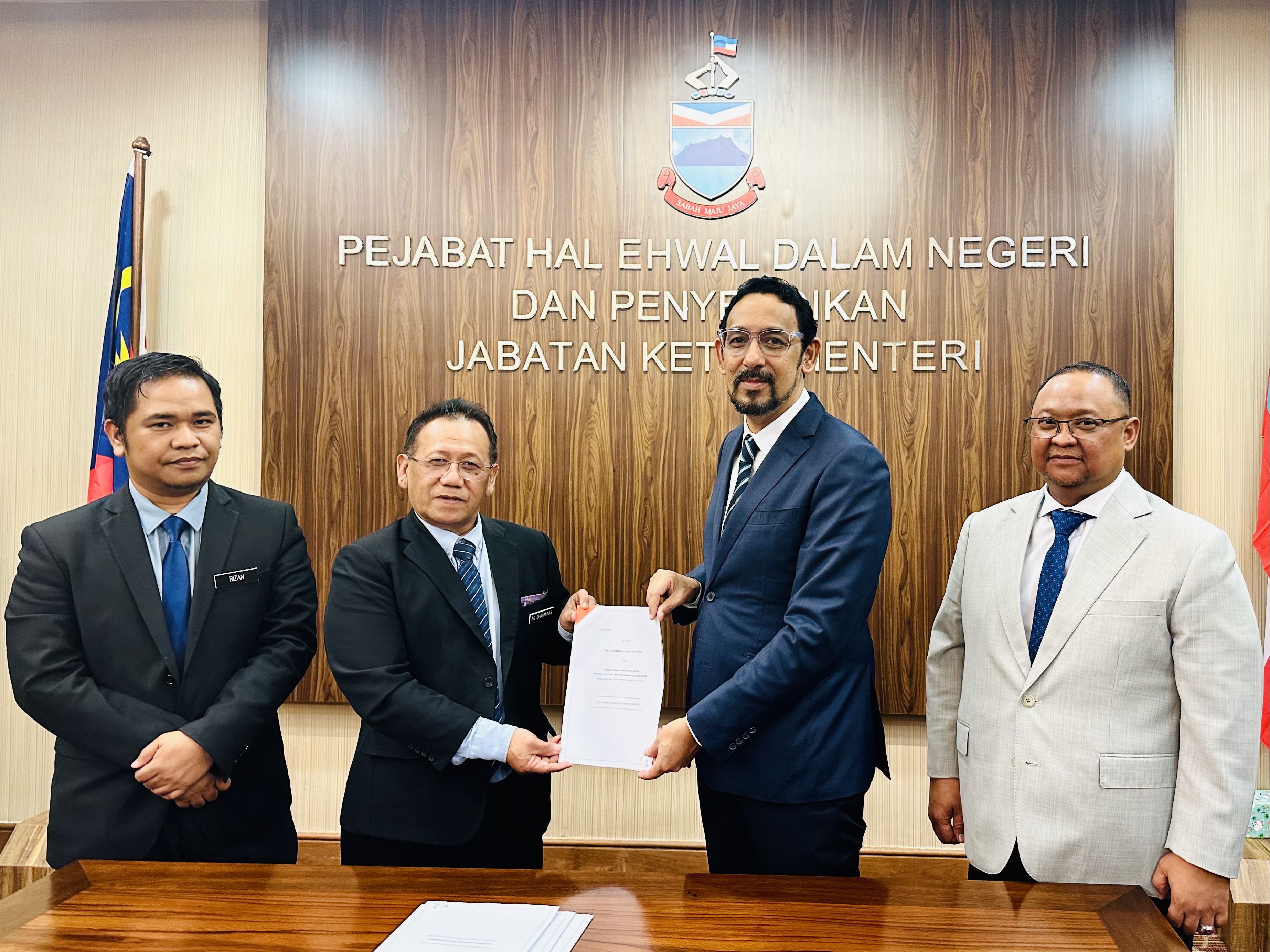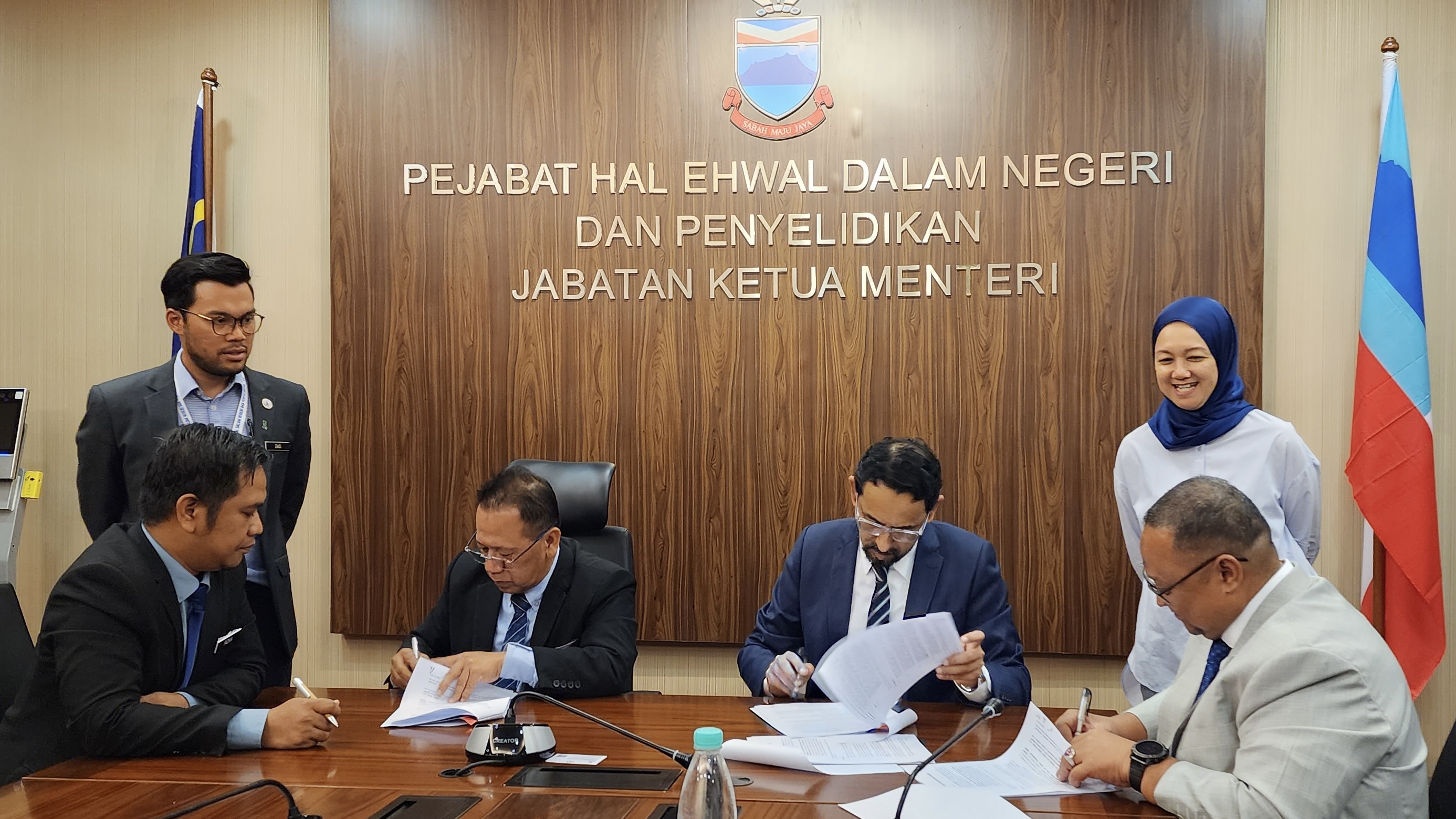 Sesi menandatangani Kerjasama Pejabat Hal Ehwal Dalam Negeri dan Penyelidikan bersama Smart Sabah Corporation Sdn Bhd telah berlangsung pada 09 Mei 2023 bertempat di Pejabat Hal Ehwal Dalam Negeri dan Penyelidikan dan telah ditandatangani serta disaksikan oleh: -